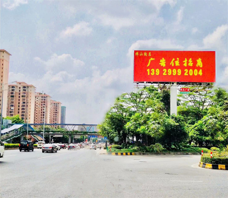 媒体优势:位于佛山市区佛山大道,该广告牌为固定双面形式,所处地理位置优越,车流量巨大,发布后辐射珠三角地区,品牌影响深远;视野开阔无遮挡,企业宣传效果强。